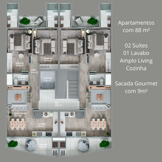 👉✨2 SUÍTES AMPLAS com 88m² privativos + lavabo